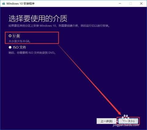 在弹出的窗口中,选择您准备好的U盘,然后点击“下一步”。