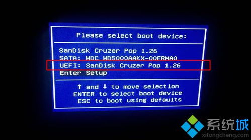 3. 选择U盘启动项,并按Enter键进入。