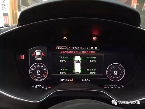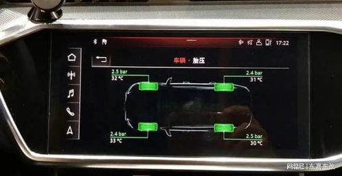 启动车辆,进行胎压监测系统校准。校准过程中,车辆会自动检测每个轮胎的气压,并将数据传输到车载显示屏。