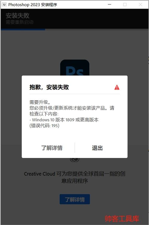 你的电脑硬件配置较低,无法满足最新版本Photoshop的最低要求。