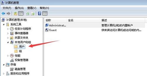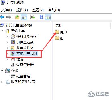 在计算机管理窗口中,依次展开“本地用户和组”和“用户”。
