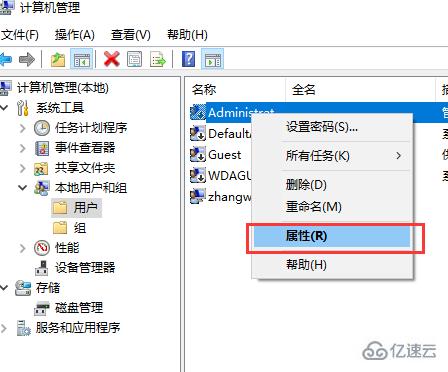 右键点击需要启用的账户,选择“属性”。