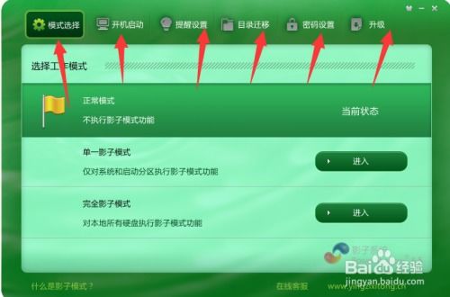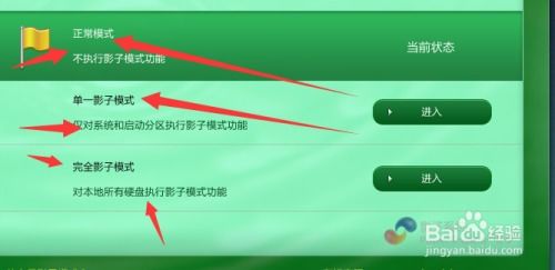 2. 或者,在系统启动后,运行影子系统管理程序,点击主界面上的“启动”按钮,选择“单一影子模式”或“完全影子模式”。