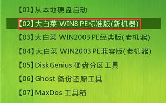 2. 进入白菜8.0启动菜单,选择“02”进入PE系统。
