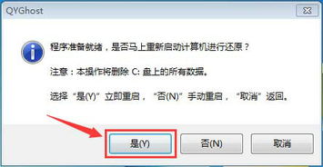 在弹出的窗口中,点击“是”按钮确认还原操作。电脑会自动重启,并进入GHOST 32自动还原系统。等待蓝色进度条走到100%,电脑会自动重启,此时还原完成。