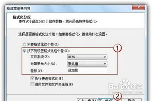 选择分区格式(如NTFS),点击“下一步”。