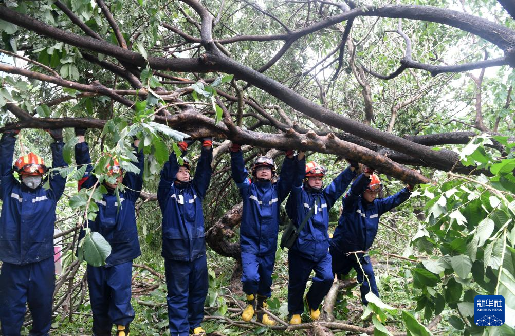 8月25日,在海南省三亚市凤凰路,三亚市消防救援支队救援人员进行清障作业。