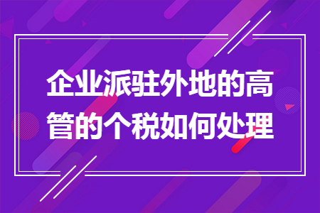 企业派驻外地的高管的个税如何处理